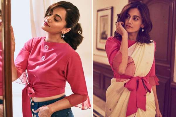 एक आप सोच सकती हैं कि ब्लाऊज को आप इस तरह भी वियर कर सकती हैं। तापसी की तरह आप भी एक ही ड्रैस से ट्रैडिशनल व वैस्ट्रस तड़का लगा सकती हैं।